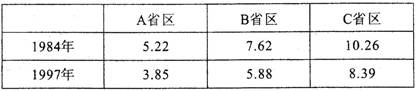 1.关于ABC三省区城市首位度的描述,正确的是2.1984年到1997年的13年间A省区城市首位明显下降,可能原因是