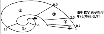 3、单选题 下图中①②③④⑤依次代表地球发展史的五个代,关于这五个代的叙述正确的是