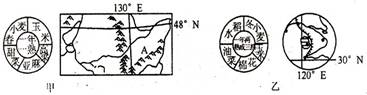 1.影响甲、乙两图所示区域作物熟制不同的主要因素是2.如要测量甲图中A山地的海拔高度,可以借助的地理信息技术是3.在农业方面,运用遥感技术能够?