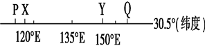 3、单选题 下图为世界地图上的一段纬线,P点以西为海洋,Q点以东为海洋,PQ为陆地。读图完成题。