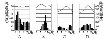 4、单选题 表示上海市气温与降水资料的一幅图是: