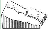 3、单选题 读图(图中A、B、C分别表示河流的上、中、下游)完成14—16题。