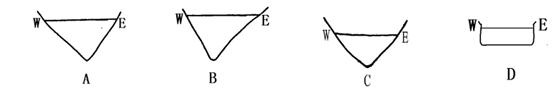 小题3:如果该河位于中南半岛,下面四幅河床剖面示意图中,最能代表A河段的是(?)
