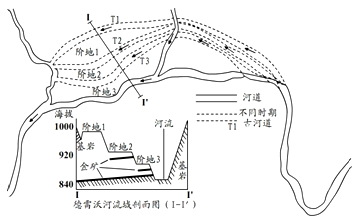 【小题2】图中阶地2、阶地3形成的主要原因是( )