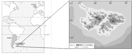 1、综合题 (22分)阅读图文材料,回答问题。 材料一?马尔维纳斯群岛(简称马岛)由346个岛礁组成,面积11800平方公里,人口约2000人,雪山和冰川面积约为全岛面积的65%,是一个气候恶劣的小岛,历史上无人问津。但是近30年来却引起了遥远的英国的极大兴趣。1982年4月2日,英国、阿根廷为争夺马岛主权而进行的“马岛之战”开始。马岛上空,硝烟未散。2010年2月,英国、阿根廷两国马岛争端再度升温,且有愈演愈烈之势。 材料二?世界区域局部图和马尔维纳斯群岛地形图