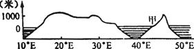 4、单选题 读沿某纬度所作的海陆剖面示意图,当北半球夏至日,甲地的正午太阳高度角为43°08′,判断1—2题。