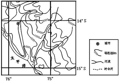 3、单选题 下图为世界某区域图,图中沿海地区年降水量约50毫米,读图完成下列各题。