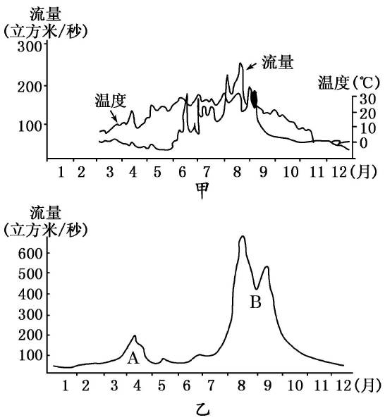 (1)河流甲年最大径流量出现在?月,其原因是?