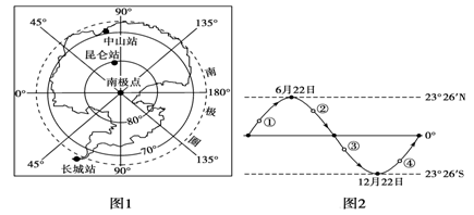 小题1:材料反映昆仑站建成时为1月27日,即12月22日过后一段时间,故选④位置。