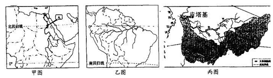 3、综合题 甲、乙、丙三图为世界著名大河的地理示意图,读图回答。(12分,每空1分)