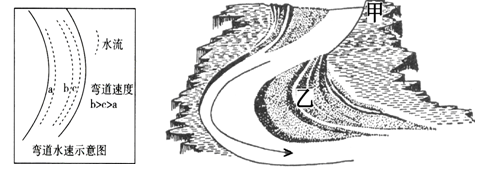 有关河曲地貌、弯道速度、外力作用和沿岸人类活动的组合正确的是