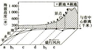 4、单选题 读“某特大城市及其周边地区各类土地的付地租能力与该地区地形剖面示意图”。回答题。