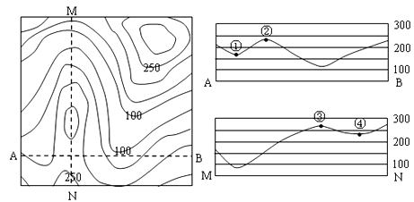 【小题1】左图中剖面线AB和MN的交点在右侧两剖面图上所对应的位置分别是:( )