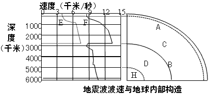 2、综合题 读地震波波速与地球内部构造图,回答问题。