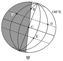 1、综合题 甲图为“某日地球光照图”,读图回答下列问题。(18分)