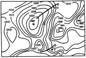 3、综合题 该图为“北半球某地区某时刻地面等压线图”。读图,回答下列问题。(13分)