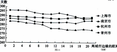 小题1:由图中城市中心和郊区植被生长期可以判断,形成四城市边缘区植被生长期分布规律的原因是城市的热岛效应。正确答案选C。