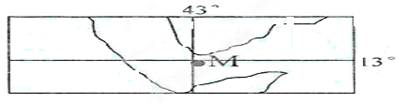 5、单选题 读图,一艘往西北航行的船只经过图中M地回答问题: