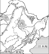 小题1:甲表示内蒙古高原的东部地区,草原广阔,故适宜发展畜牧业;乙表示小兴安岭地区,山区适宜发展林业。