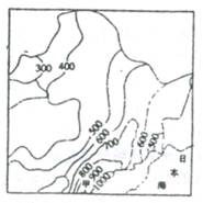小题1:从图中可以看出,东北地区的降水量从东南向西北递减,其主要的影响因素是距海远近和夏季风的风向。