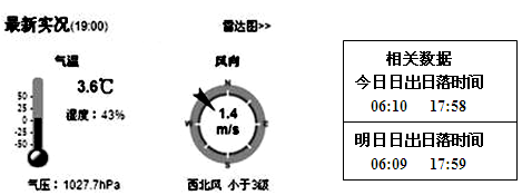 3、单选题 下图为“东营某日天气预报与日出日落时间的截图”。据图中所示信息分析,当日最接近的节气和太阳直射的位置移动的方向是( )
