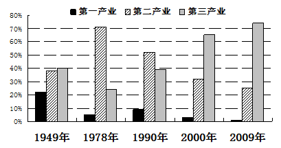 2、单选题 读60年来北京市产业结构变化图,回答下列各题。