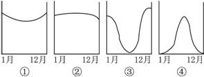 (2)表示B城降水量逐月分布状况的图为(将上面四幅图中正确代号填在括号内)(?)