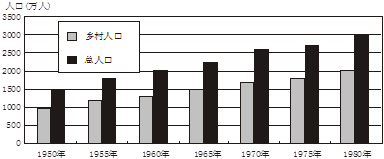 2.城市化的主要标志是城市人口占总人口的比重。通过图中数据可计算出该地区1950年和1980年城市化水平均为33.3%,没有发生变化。