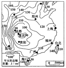 (2)郑州的年太阳辐射总量为________J/cm2,广州的年太阳辐射总量为________J/cm2。