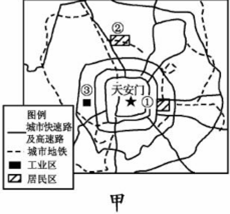 (1)图中①处为北京的CBD,它没有分布在市中心是受____因素的影响。②处布局居民区是为了________,居民区布局在此的有利因素主要是________________________________。
