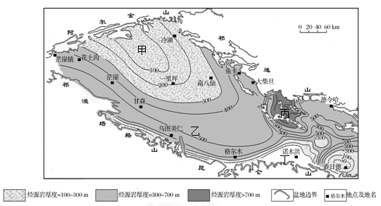 3、单选题 下图为我国某地区烃源岩沉积厚度等值线图,读图完成下列各题。