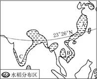 2、综合题 读“水稻的主要分布区图”,完成下列问题。