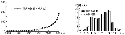 1、单选题 ? 青藏铁路的通车标志着西藏旅游进入了一个新时代。读下列有关青藏铁路通车前后旅游业发展变化图(左)及游客月份分配图(右)回答1—2题。