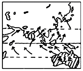 A.地球在公转轨道上处在远日点时,全球气压带、风带正向北移 B.就北半球来说,夏季北移,冬季南移 C.随太阳直射点的移动而发生季节变化 D.元旦前后向南移动  |