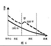 A.A地处市中心,方便人们上下班,可以大量兴建住宅。 B.B地交通条件优越,在四个地点中地价最贵。 C.C地位于城市边缘,濒临湖泊,环境优美,可兴建高级住宅区。 D.D地位于城市市郊区,拥有较多的空置土地,最适合兴建大型商业区。 4、单选题 以下是我国四个不同地区区域城市化的典型模式,其中最能代表苏南地区的是 5、单选题 图6 为“我国某市同一地区不同时期地价曲线图”。读图回答问题。 |