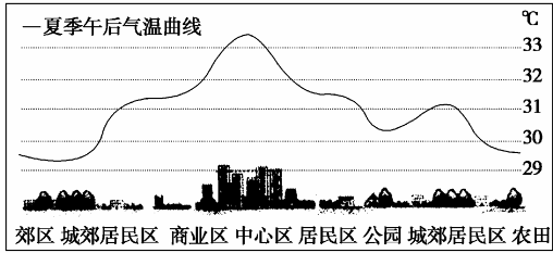 本题解析:本题考查了城市热岛效应的形成及影响等相关知识。城市工业、人口集中,交通工具多,燃烧大量矿物燃料,释放较多人为热,使城市气温偏高,形成“热岛”。郊区气温低于市区,近地面气流由郊区流向市区,因此植树造林应考虑城市与郊区之间的热力环流(城市风)的范围。回答问题时,注意学会知识的迁移,并结合城市的实际进行回答。