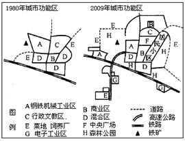 (1)试评价1980年钢铁机械工业区的区位。