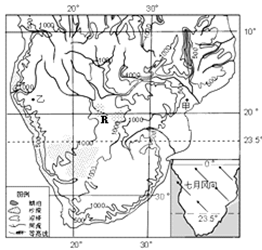(3)图中R区域的两片沼泽地在不同季节会呈现离合变化的现象,请予以说明。(10分)