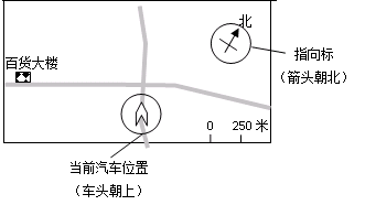 【小题2】汽车从当前位置行驶到百货大楼路程约为(   )