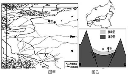 (1)图中A、B两地都分布着草场资源,分别分析其形成的原因。(8分)