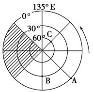 3.此题考查自转的速度。全球自转角速度为15°/1小时,线速度由赤道向两极递减,两极没有角速度和线速度。A、B、C角速度相等,纬度低到高为A、B、C,故A、B、C线速度为A>B>C。故选C。