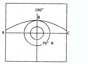 A.热带和寒带范围扩大 B.温带范围扩大 C.冬至日北半球正午太阳高度变大 D.冬至日北半球昼长变长 3、单选题 下列几个日期中,海口(20°N)的昼长大于北京的昼长的是 4、单选题 若全球处于同一日期,则北京时间为(?) 5、单选题 下图表示全球处在同一日期时,曲线ABC上的太阳高度为0°。读图完成下列问题。 |
