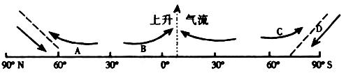 (3)C气流来自 ?气压带, C气流与D气流相遇后向上爬升的原因是 ? 。(4分)