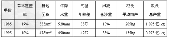 4、单选题 读我国北方某地区的部分资料表,根据表内容推断目前该地区主要的生态环境问题是