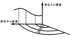4、单选题  下图为“我国某中等城市常住人口数量与距市中心远近的关系图”。读图完成1—2题。