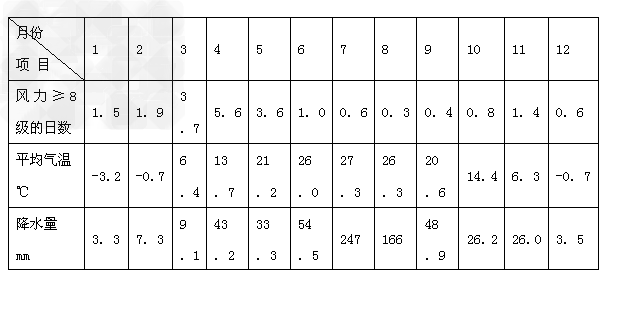 1、单选题 下表是我国某地我年平均气候统计资料。完成1-3 题。