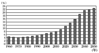 4、综合题 阅读下列材料,完成下列问题。 材料一: ? 根据国家统计局2009年2月26日发布的“2008年国民经济和社会发展统计公报”,2008年我国出生人口1608万,出生率为12.14‰;死亡人口935万,死亡率为7.06‰;自然增长率为5.08‰。 材料二: 我国隔5年的65岁及以上人口增长示意图(65岁及以上年龄人口占总人口的7%,则出现人口老龄化)。