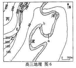 A.B、C两地中,B地可能有河流出现 B.图中最高峰的高度可能大于1600米 C.图中断崖在鞍部的西北 D.D地气温为25℃,则E地气温为22.6℃ 参考答案: 本题解析:本题考查等高线地形图。 本题难度:一般 2、单选题 读图6,判断题 |
