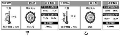 5、单选题 小明和小亮于同一天出生在我国的甲、乙两个城市,下图为他们16岁生日那天所在城市的天气预报图。据此回答小题。