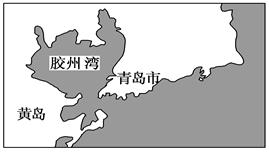 材料三 青岛与胶州湾的地理位置。